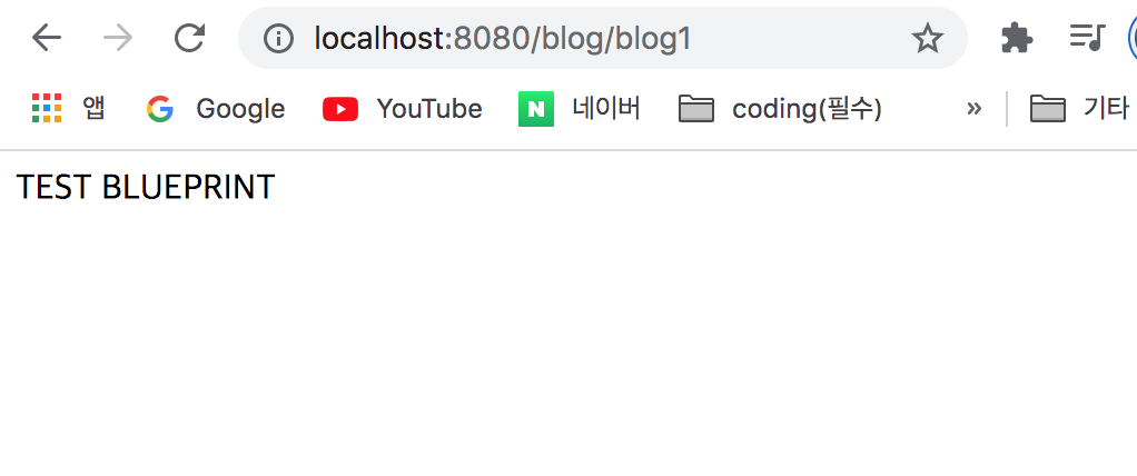 참고로, url_prefix는 기본 경로명을 의미하며 하위 폴더의 소스파일에 있는 라우팅 경로는 URL/기본경로명/라우팅 경로 와 같이 설정해야 한다. (ex. http://localhost:8080/blog/blog1)